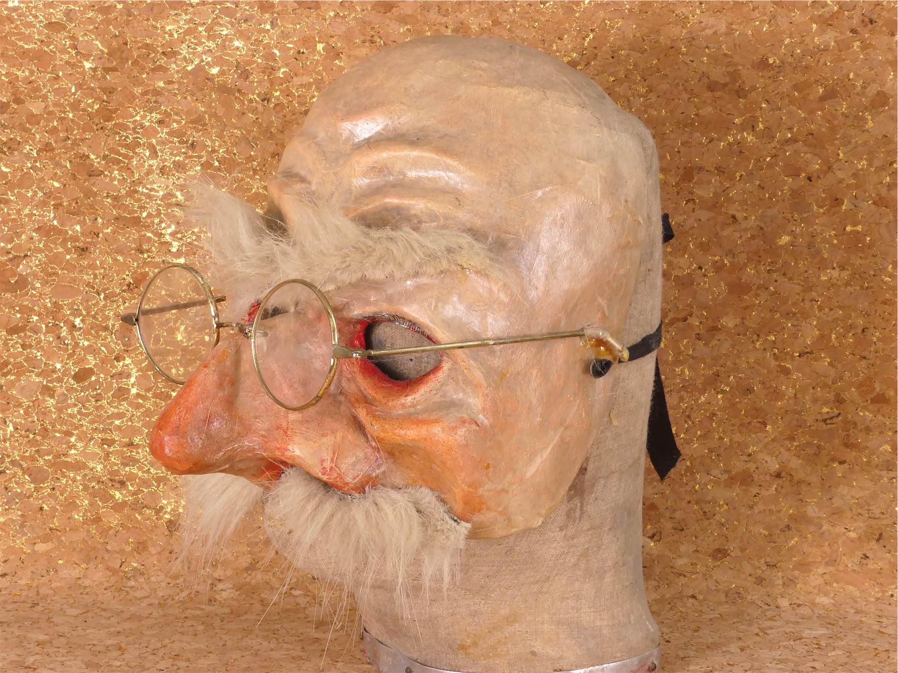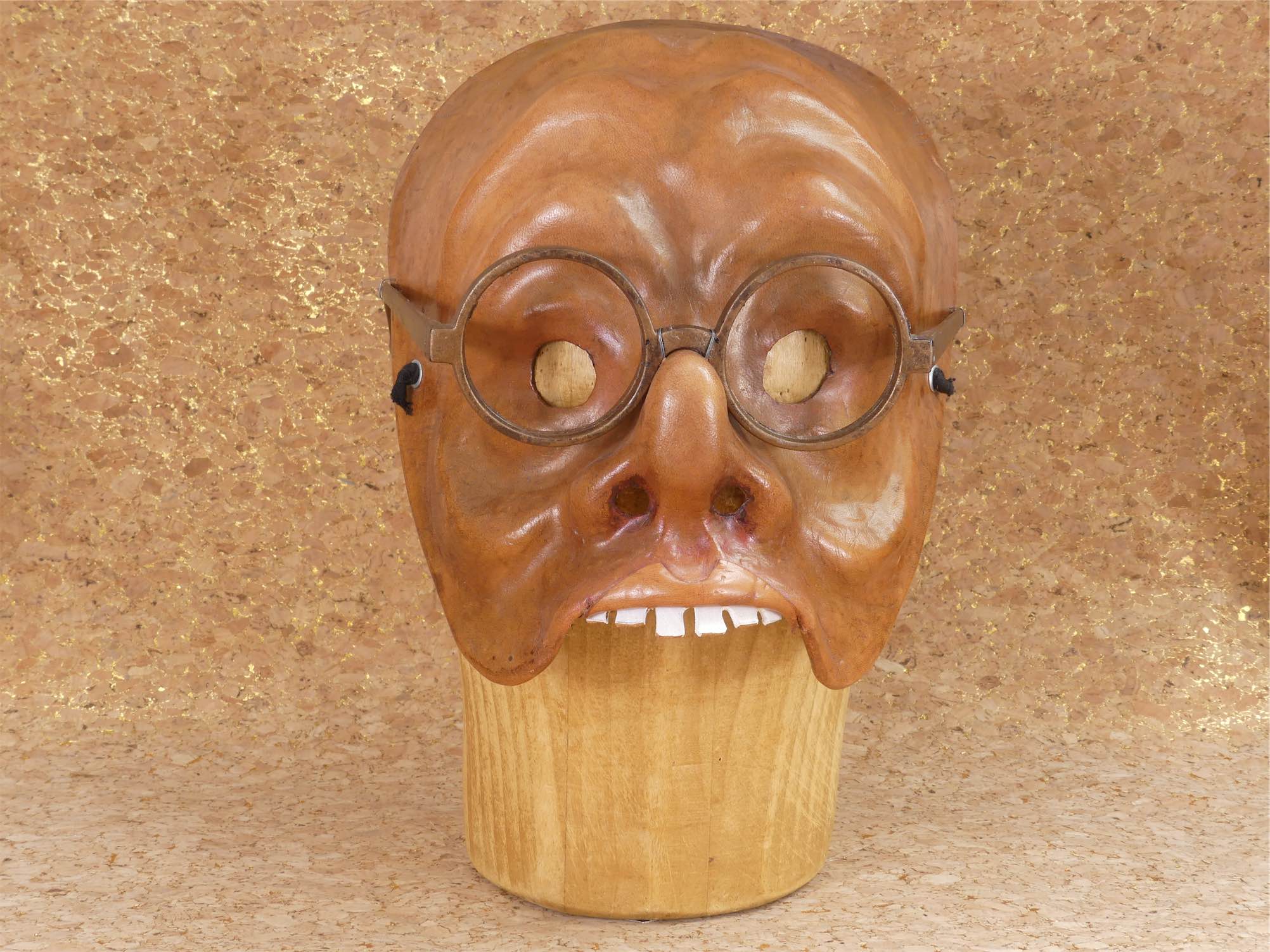 Tartaglia is Italian for Stutterer. He's long sighted hence the glasses, and appears in many scenarios, often as an unsuccessful lover. He's sometimes a Chemist, a bailiff or even a lawyer but more often appears as a salesman. Click on a mask to get an order form.